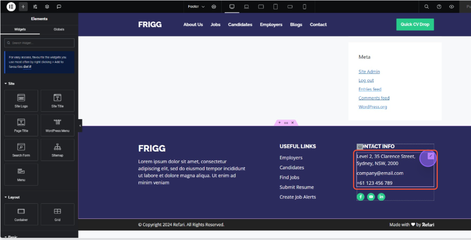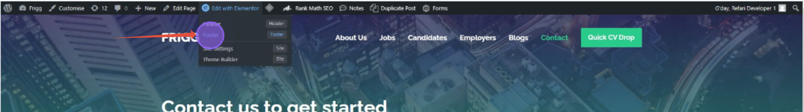 Step 1: To edit the address in the footer, hover on "Edit with Elementor" and click "Footer" to enter the editor view of the footer.