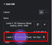 Step 3: Within the side panel of the icon list, click the Address item in the list.
